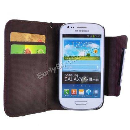 Flip PU Leather Case Cover w/Stand For Samsung Galaxy S3 III Mini i8190 Brown