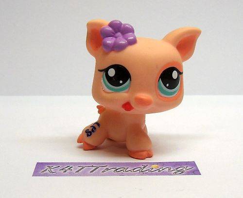LAST ONE - Littlest Pet Shop, Pink Pig with purple Flower #1548 - one of the triplet pigs