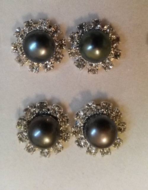 DARK COLORED FRESH WATER PEARL EARRINGS SET BETWEEN LOVELY SPARKLING STONES. THEY ARE IDEAL FOR THAT SPECIAL EVENING OUT. ONLY ONE PAIR AVAILABLE.