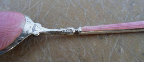 STUNNING VINTAGE ART DECO PERIOD BOXED SET OF STERLING HALLMARKED SILVER AND ENAMEL TEA SPOONS STILL IN THEIR ORIGINAL VELVET AND FELT LINED BOX. SPOONS ARE HALLMARKED FOR BIRMINGHAM 1936 MAKER LOOKS LIKE T.T.LTD. SPOONS ARE IN VGC, NO DAMAGES TO SILVER BUT 3 SPOONS HAVE A LITTLE CHIPPING TO THE ENAMEL ONLY ON THE BACKS, SO STILL A STRIKING BEAUTIFUL SET. DON'T SUGGEST SCRAPPING THESE, BUT FOR THOSE INTERESTED COMBINED WEIGHT 67 GRAMMES. BOX IS IN GOOD ORDER JUST SOME STAINING TO THE VELVET LINING. CLASP AND HINGES GOOD. BOX MEASURES ABOUT 14 X 12 X 2CM SPOONS ABOUT 10CM LONG.