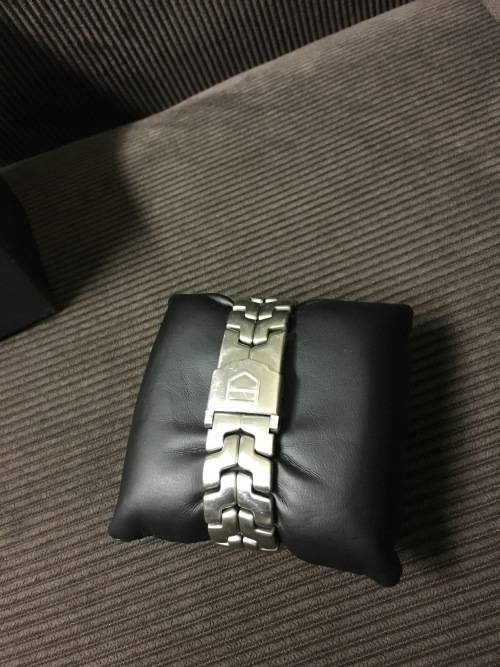 THE BRACELET IS TAG HEUER'S SIGNATURE S-LINK WHICH IS VERY SUBSTANTIAL AND EXTREMELY QUIET - NO RATTLES ETC.
