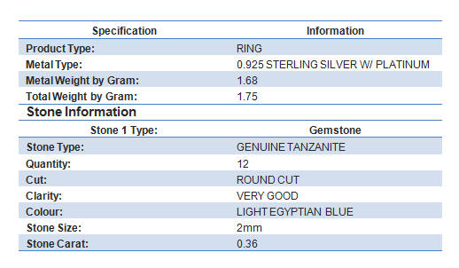 Stunning Light Eqyptian Blue Genuine Tanzanite and sterling silver (platinum plated) ring up for grabs today. Comes in a free jewelery box.