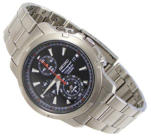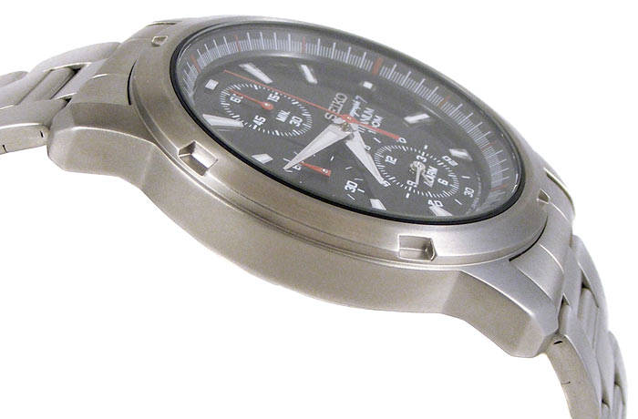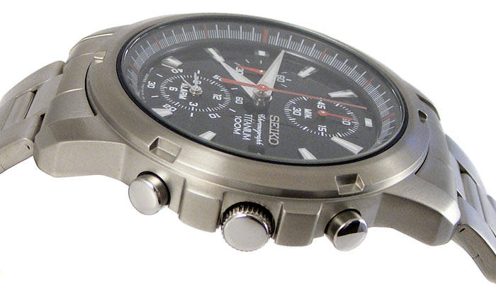 The Seiko SNAE47P1 features a full titanium case, case back and bracelet with deployment clasp.