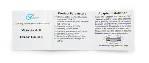 Viecar 4.0 is a "software + hardware" multi functional, comprehensive in-vehicle high-tech automotive electronics product, using bluetooth 4.0 dual-mode design, perfectly supporting IOS and Android devices and high-speed data transmission, along with low power consumption.