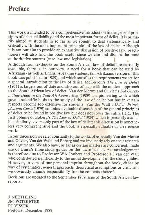 Law of Delict By: Neethling, Potgieter & Visser