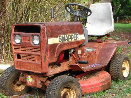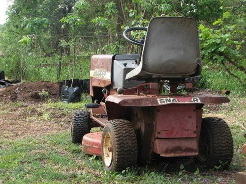 Ride-on lawnmower for sale. It looks like a small tractor. Colour = red.