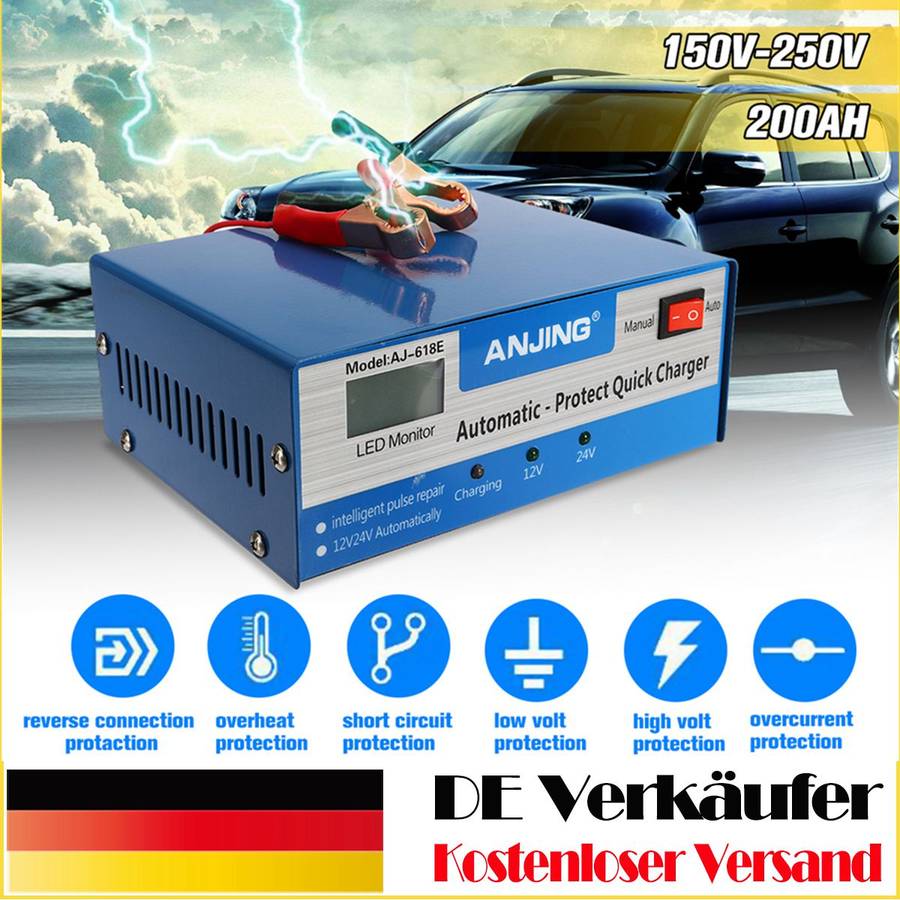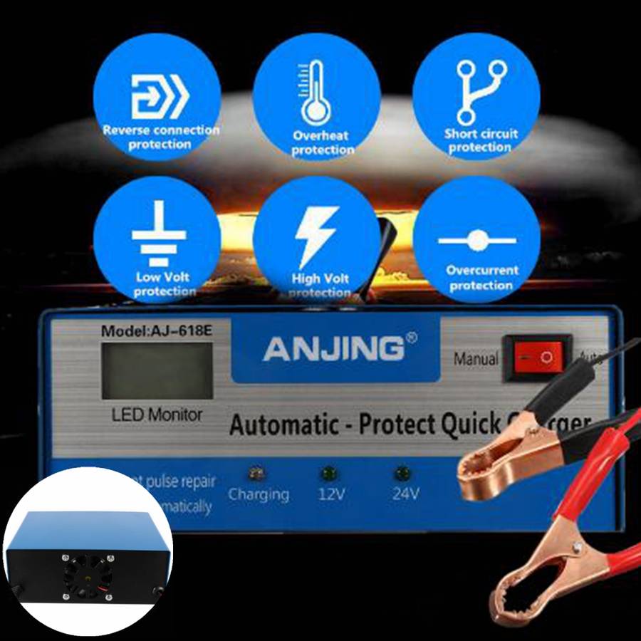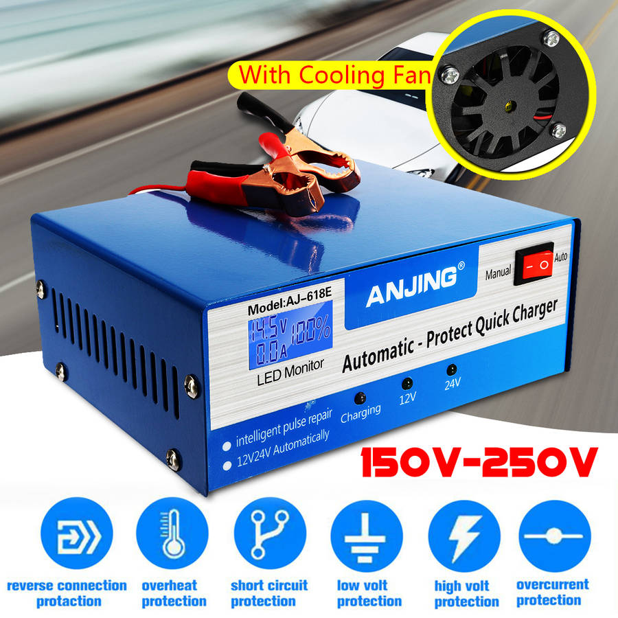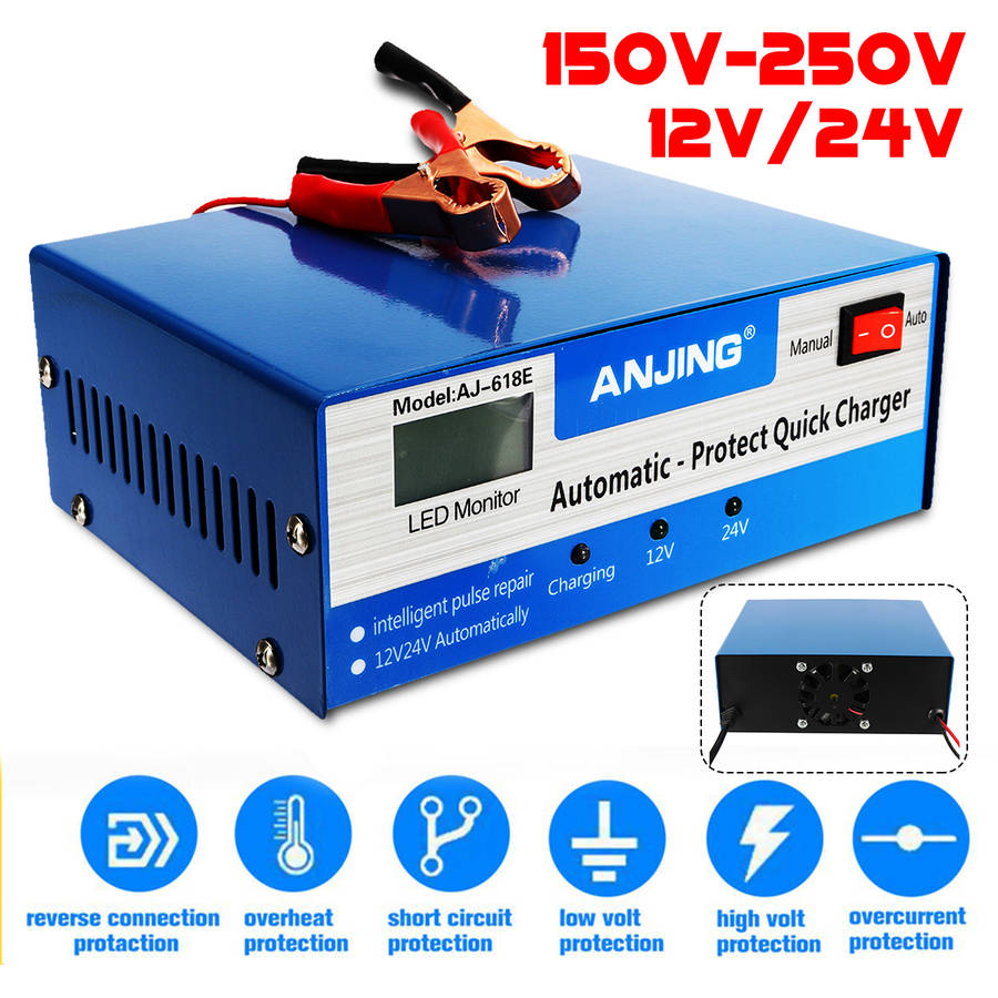 Package Included: - 1 x Car Battery Charger - 1 x User Manual Features: - Automatically Applicable to the 12V/24V lead acid battery - Advanced pulse width modulation (PWM) technology - With LCD display to show Voltage , Current , and % battery power exactly - Good voltage transformer and Heat dissipating design provide safety and stability for charging - Five Charging Modes: No-load Mode/Constant Current Mode/Constant Voltage Mode/Float Mode/Trickle Mode - The battery life can be significantly improved by digital pulse repairing method for the power chips of microcomputers - Suitable for various Car / Motorcycle / Van / Truck batteries Specifications: - Power Supply: EU Plug (220V) - Input Voltage: 150V-250V - Output Voltage: 12V / 24V - Current: 12V 12A Max / 24V 10A Max - Power: 220W - Frequency: 50-60HZ - Size: Approx. 18 x 14.5 x 8cm/7.09 x 5.71 x 3.15 - Power Cord Length: 110cm/43.31 - Clip Cord Length: 60cm/ 23.62