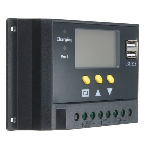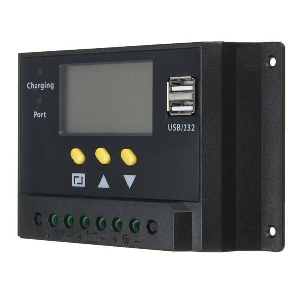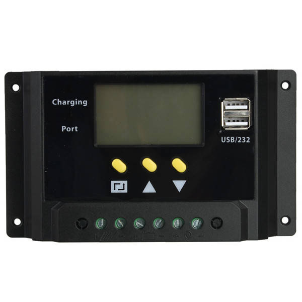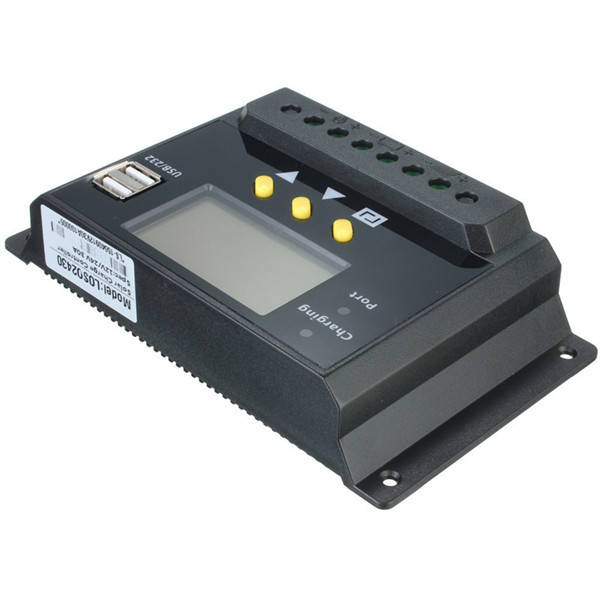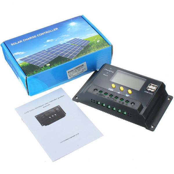 LCD 30A PWM Solar Panel Regulator Charge Controller 12V/24V 360W/720W with Dual USB Port30 x 50mm LCD display screen, can show the status of charging and discharging in time.