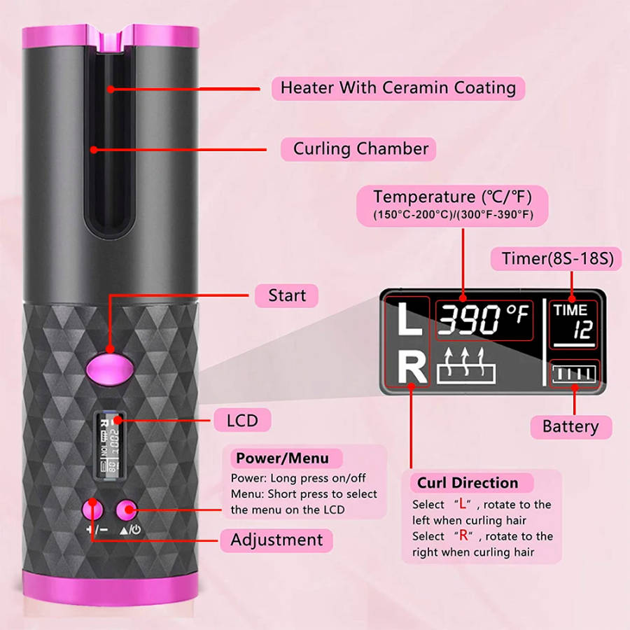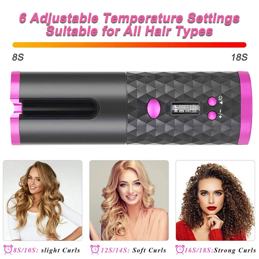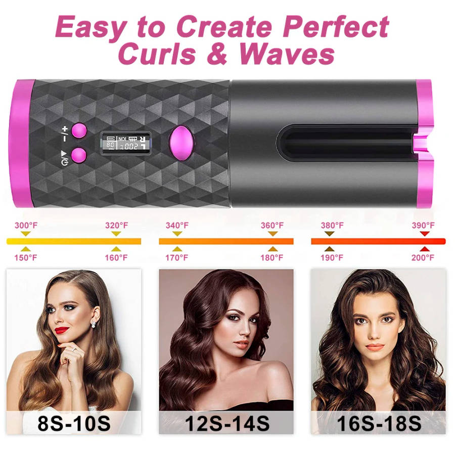 Cordless Automatic Wands Curling Irons Hair Curlers Machine Portable Ceramic Wireless Rechargeable LCD Display Hair Curly Tools