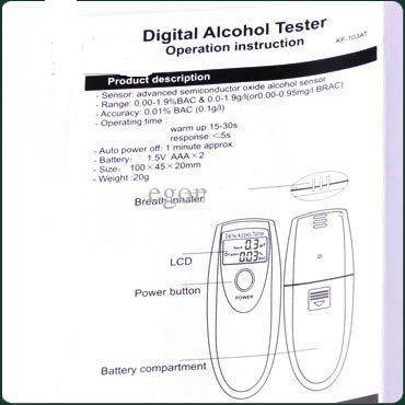 Portable LCD Alcohol Analyzer for safe driving! LCD screen Breathalyser. Promptly and conveniently design Digital Breathalyser for measuring BAC. A simple method to analyze blood alcohol concentration at anytime and anywhere.