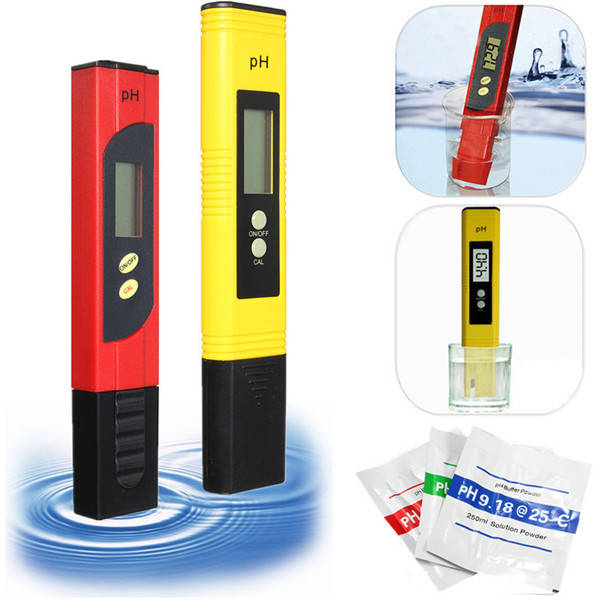 Display: LCD Digital Accuracy: 0.01 Resolution: 0.01 Operating Temperature: 0~80°C Measuring Range: 0.00~14.00 Probe Type: Precision glass bulb electrode Calibration Method: 2 points automatic calibration Power Supply: 2*1.5V Batteries(Not included) Size: 155 x 29 x 16mm Color: Red / Yellow