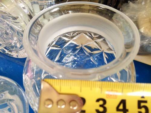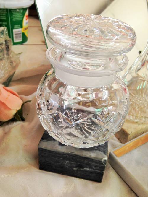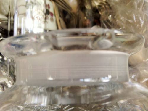END OF1-LEAD CRYSTAL CUT GLASS DIAMON PATTERN DESIGN JAM JAR HAS LID-RIM CHIPS - LISTING