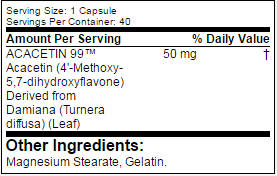 SD Pharmaceuticals' ACACETIN 99™ is a pure form of Acacetin derived from the Damiana (Turnera diffusa) plant. ACACETIN 99™ was developed based on the findings of recent research that examined the anti-aromatase properties of compounds isolated from the Damiana plant!