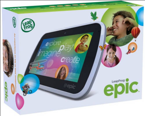 The full-featured LeapFrog Epic tablet captivates kids with a world they create. Children can bring a town to life, using various art styles that reflect their age and mood. They can watch their world turn from day to night, change the weather, add animated characters and discover a new surprise every day.