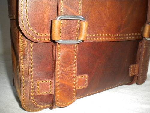 Handcrafted, thick(1.8-2mm) full grain leather (waxed, pull up) that will soften and age gracefully(antique look).