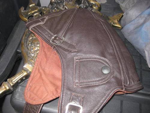 Leather helmets for roofless cars and planes