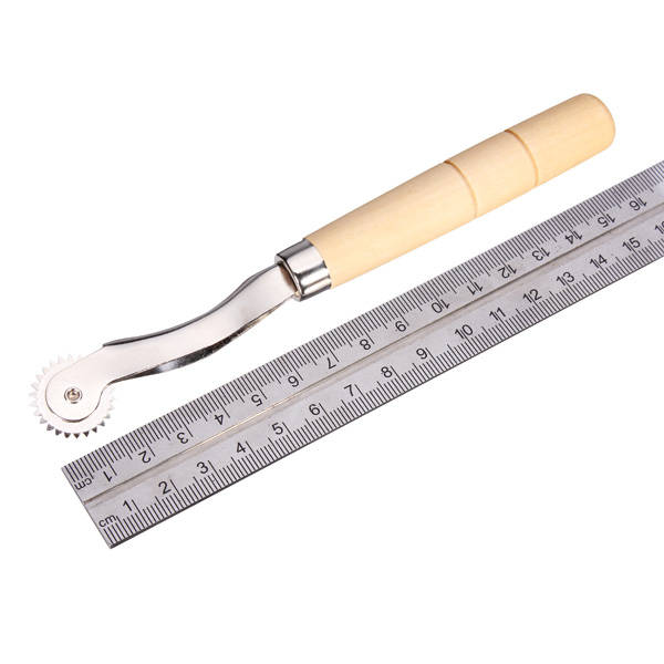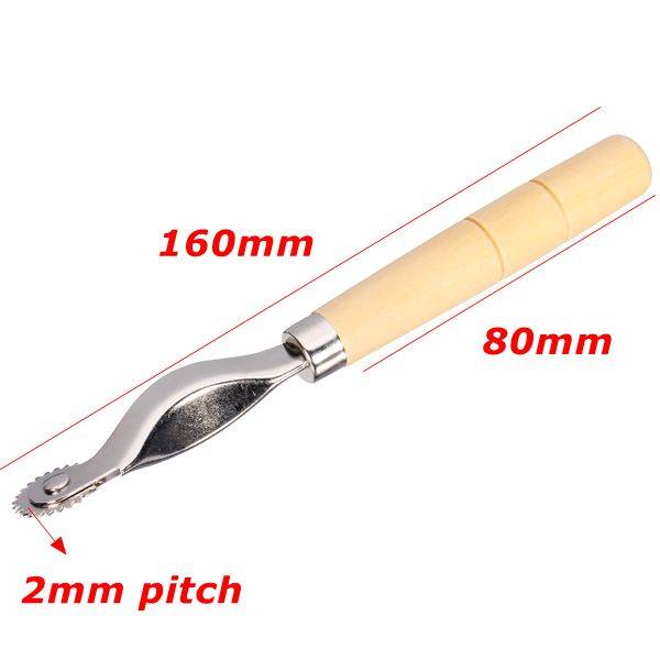 Leather Overstitch Wheel Overstitcher Roulette Spacer Wheel 2mm Pitch Description: Material:wood+metal Function:drawing line on the leather,paper or cloth Stitching Pitch:2mm Wheel Diameter:20mm Length:160mm Features: Durable and excellent workmanship Comfortable hand feeling Can draw equally spaced points on the cloth,leather and paper making the needle stitch length is consistent Package included: 1X Leather Overstich Wheel
