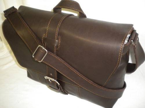 Leather Postman briefcase chocolate brown