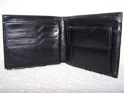 The wallet holds 6 credit cards, ID/driver's licence etc., coins and 2 compartments (1 with zip) for notes.