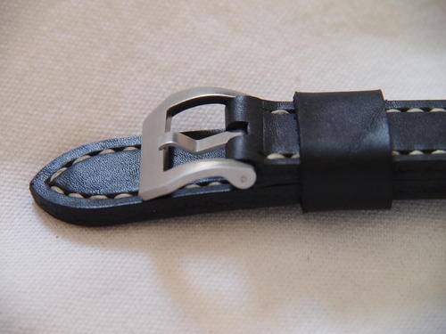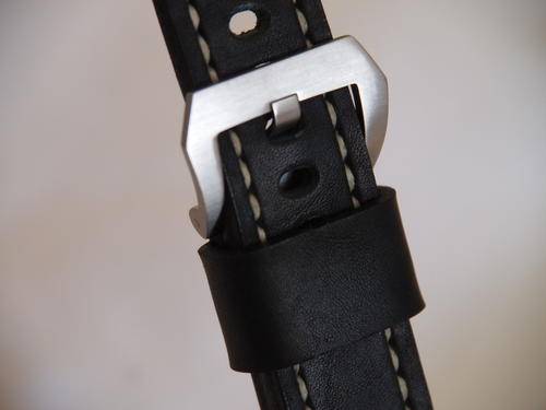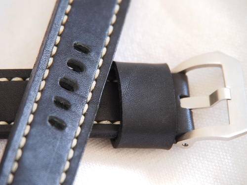 Leather Watch strap, Hand stitched Replacement Watch Strap (22/22), Off White Stitching, COOL CARBON BLACK leather!!