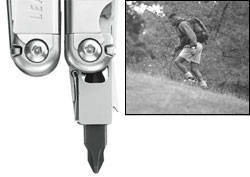 Accessing the interior features is a snap, too -- just grip the handles and rotate them open. Each interior blade can be opened by using the nail nicks. The scissors extend in the very same way, and they lock into place for secure, safe use. And of course, it's easy to change the tool bits, too. Just remove the bit from the driver and pop a new one into place.