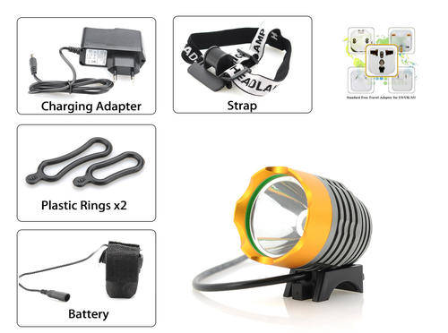 The actual lamp contains a Cree T6 LED, which emits up to a maximum of 1200 lumens; therefore you get a long and clear view of the road ahead. As this head torch uses 10 watt power it will provide ample usage time and as it comes with a built-in battery it can be easily recharged.