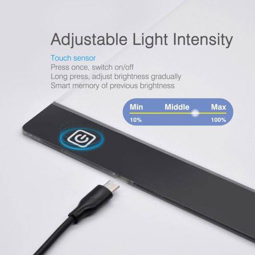 Compared to the brightness step level limitation, this light pad offers you a linear dimming light control system. Long press the touch sensor, the brightness could be adjusted gradually to the exact intensity that you want. Besides, with its unique memory attribution, this brightness will be memorized for your next use.