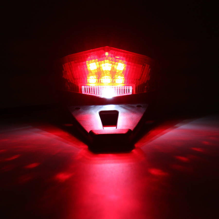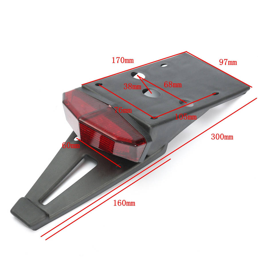 Description: Made of polypropylene with polycarbonate face Easy installation,Minor wiring and brake switch required Low power consumption Specification: Material: ABS Plastic Color: Black Shell+Red Lens Voltage: 12V Size: 300mm(L) x 97mm(W) Wire Length: 30cm Light Source: LED LED Number: 11 LED LED Light Color: 6xRed + 1xWhite + 4xAmber Placement: Rear Function: Tail Light , Running Light, Turn Signal Light, License Plate Light Fitment: Universal for most motorcycles Wiring: total 5 Wires Black- Negative Blue- Running Light/Tail Light (6x low-beam red led + 1x white led light on) Red- Brake Light (6x high-beam red led + 1x white led light on) 2x Yellow- Turn Signal Light Note: 1.Instruction is not included,professional installation is highly recommended. 2. Please check the size measurement chart carefully before making payment. 3. Please allow 0.5-1 inch difference due to manual measurement.(1 inch=2.54cm) 4. The color of the actual items may slightly different from the listing images due to different computer screen, thanks for your understanding. Package Included: 1 X Motorcycle LED Tail Light