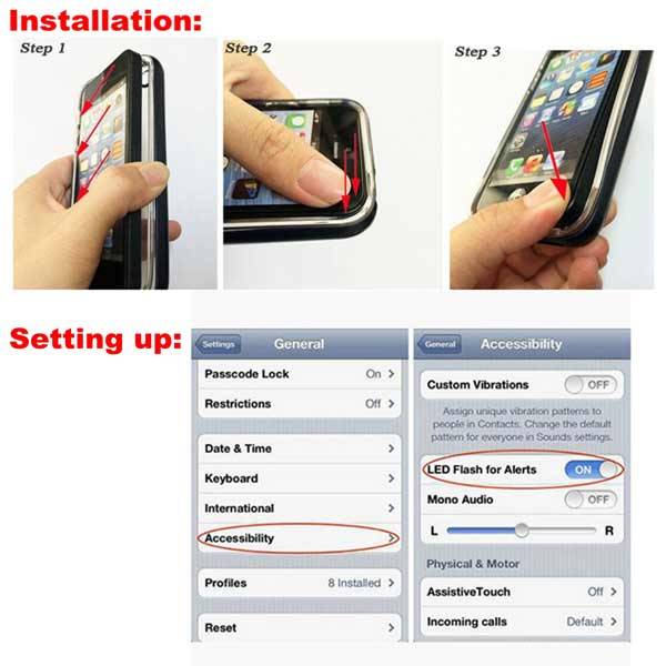 4. You need to set a LED flashing reminding, and then the case will flicker when you has an incoming call (only in sleep state ).