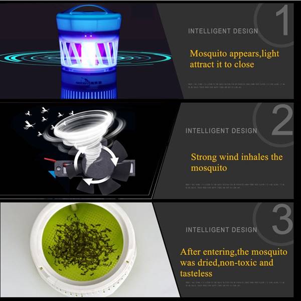 Feature: -Energy saving:power consumption per hour 0.02kw/h -High efficiency and environmental protection:no smoke,no smell,mute,effective lure mosquitoes. -Appearance fashion:the design is exquisite,portable,simple and safe operation -Application:Suitable for household,restaurant,hotel,dining room,hospital and other places.