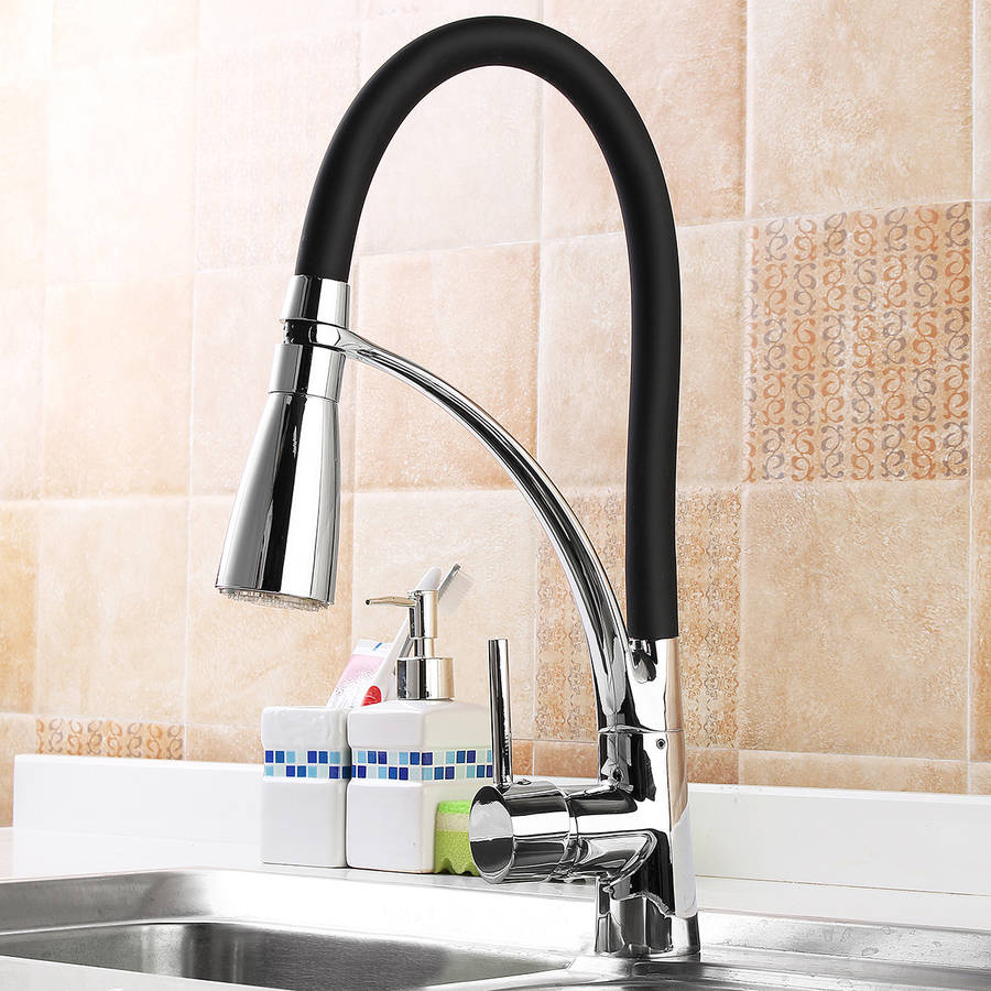 LED Kitchen Sink Faucet Black Chrome Plated Cold Hot Pullout Spray Faucet Mixer Taps