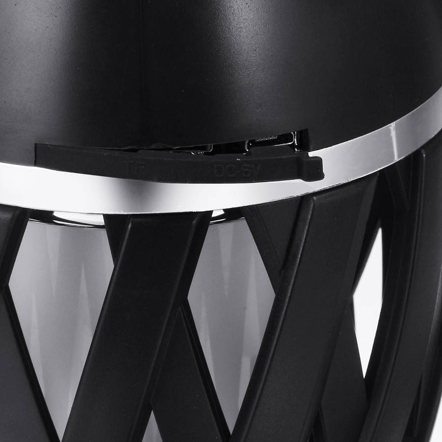 Features: The sound of bluetooth speaker is good and flame is cool for in the house or outside on the patio camping. You will enjoy listening the music with flame flickering. The simulated fire looks very nice at night. It creates a nice ambiance and mood. Romantic and Attractive Flame Lamp Speaker Soft,golden glow that enhances any outdoor setting Listen your favorite music while relaxing in backyard at night Soothing light flickers very realistically like an outdoor torch Perfect for BBQ on a deck or patio, bonfires or small parties Built-in 96 LED light,dynamic warm flame lights make you feel mysterious in any occasion Easy to use: A push of a button to turn the light on and off 4.2 bluetooth Version almost compatible with all bluetooth compatible devices, such as for iphone, for ipad,or other smartphone Specification: Type: Led Flame Lamp bluetooth Speaker Material: ABS bluetooth Version: 4.1 LED Light: Support, soft light Light Source: 96 LED Light Frequency Response: 100Hz-20KHz Waterproof Level: IP65 SNR: 75dB Distortion Rate: 10% Horn Parameters: 52mm 4 5W Impedance: 4 Range: 10m/33ft Interface: 1 x Micro USB part, 1 x Tripod slot Battery: Built-in 7.4V 1500mAh Li-ion battery Power Supply: 5V/1A Output Power: 5W Charge Time: Approx. 2 hours Music Playing: Approx. 6 hours Torch Lamp Working Time: 12 hours Standby Time: Approx. 24hours Charging Cable: 0.8m/2.6ft Size: 6 x 17cm (W x H) Package Included: 1 x Led Flame Lamp bluetooth Speaker 1 x USB Cable 1 x English User Manual 1 x Package Box