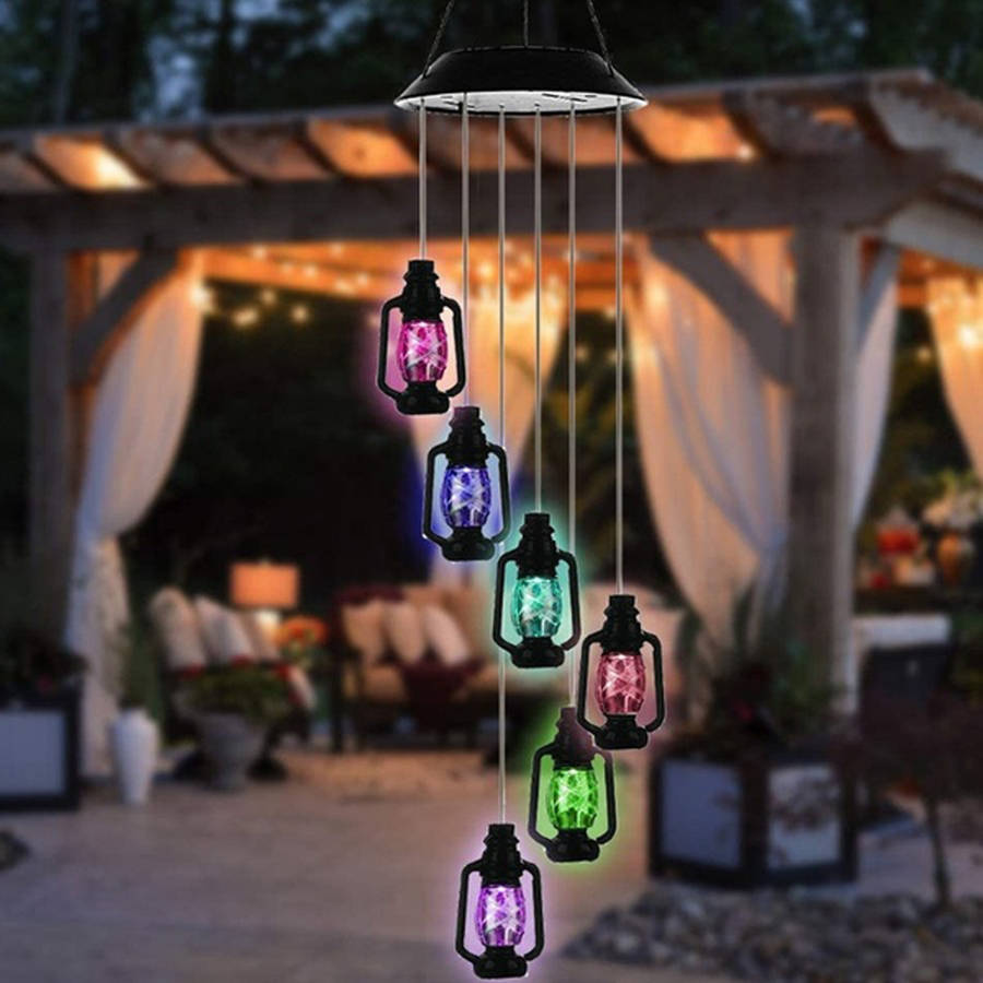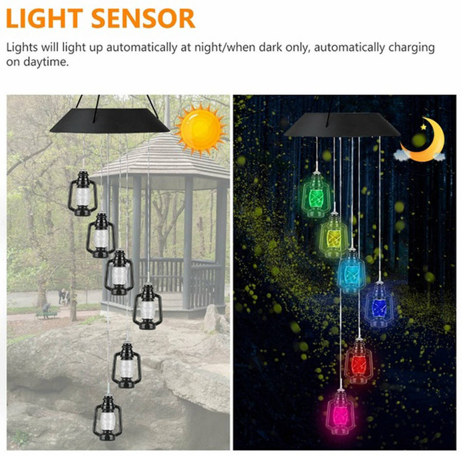 -The LED wind chime lamp attached 6 bulb lights. Featuring a color changing LED bulb. It will light up when dark and changes its color randomly, calmly and softly changing from one color to the next.