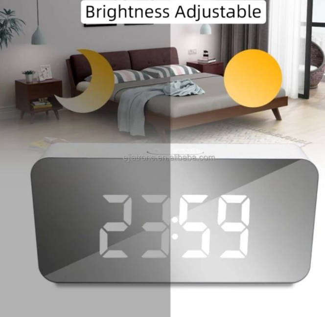 Adjustable Brightness--The mirror digital clock provides 3-level brightness, adjust by manual or auto-dimming at night. Very convenient to use.