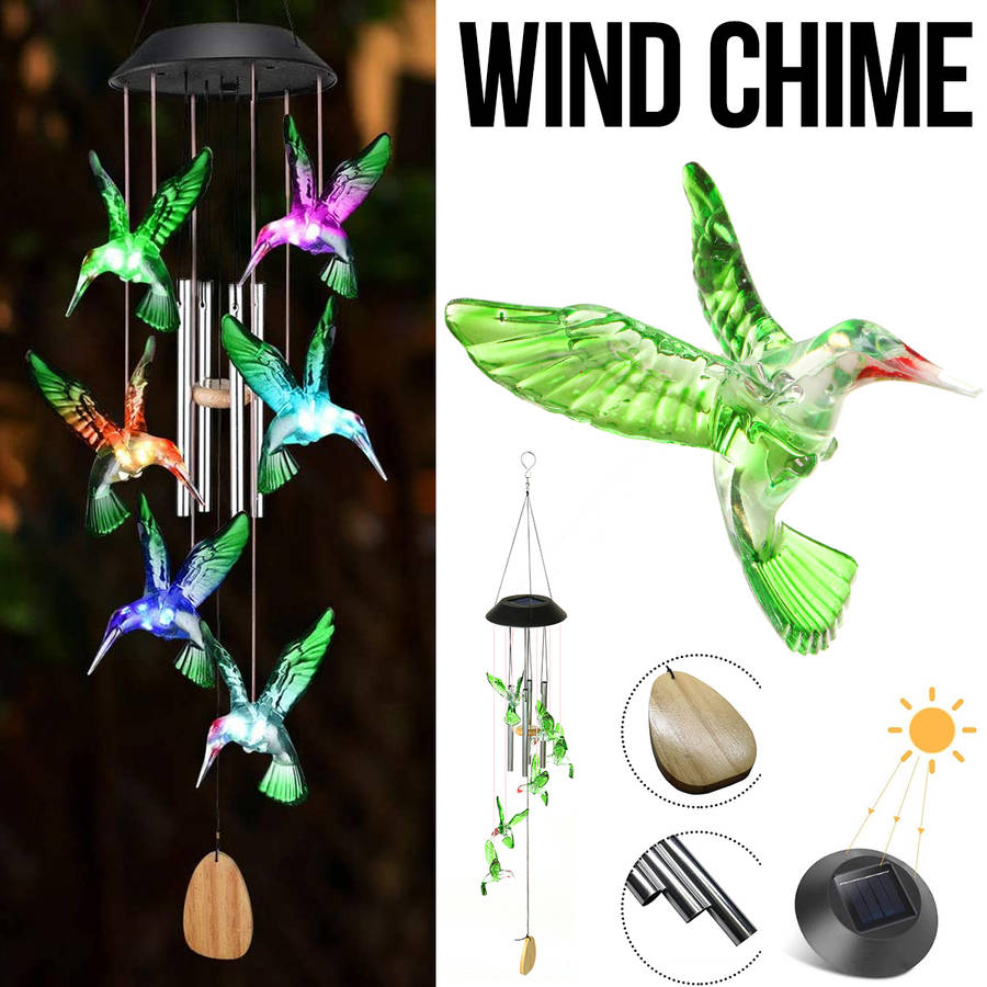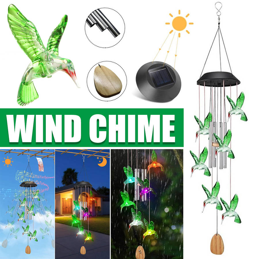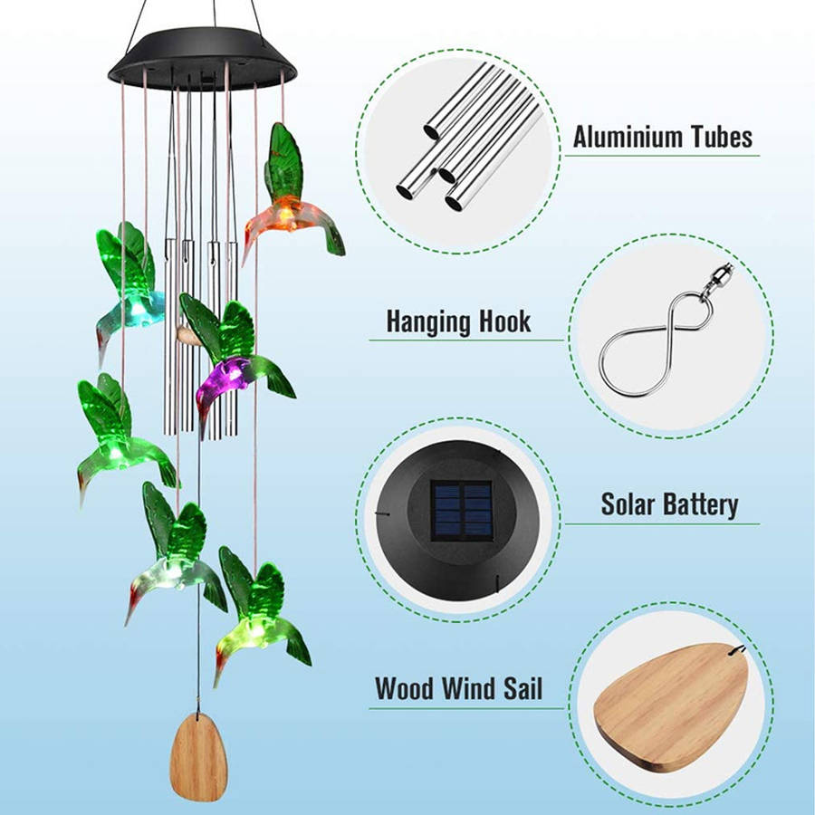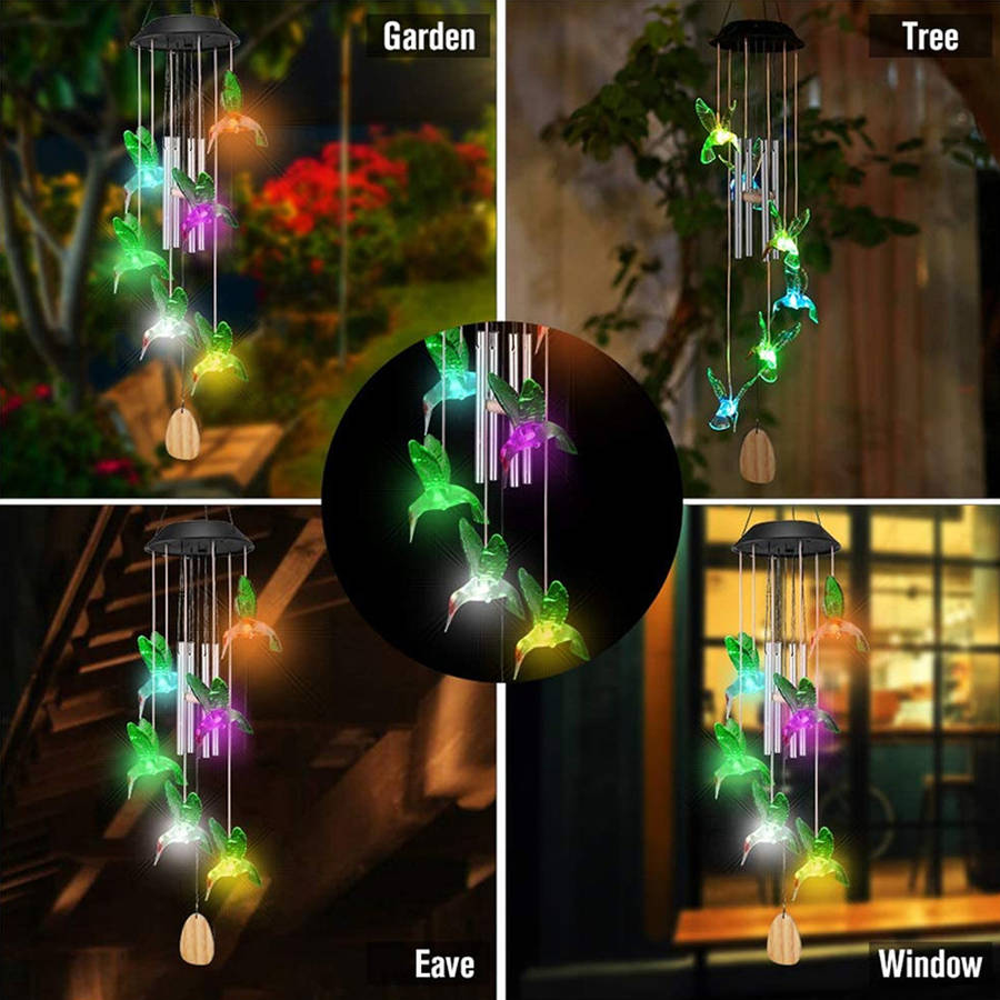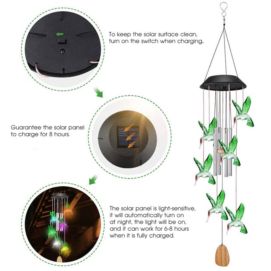 Indoor or outdoor decorLovely and vivid crystal blue Hummingbird string light solar wind chime is the best choice to decor your garden.easily hang from trees, fences, patio, garden, lawn, other features. Great gift present for Christmas, Birthday, Holiday, Thanksgiving, Halloween, Motheras Day, Fatheras Day