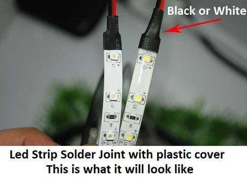 Longer lengths of wire @R5 per mtr can also be soldered to the end of the strip or alternatively buy a solderless connector as per our listing.