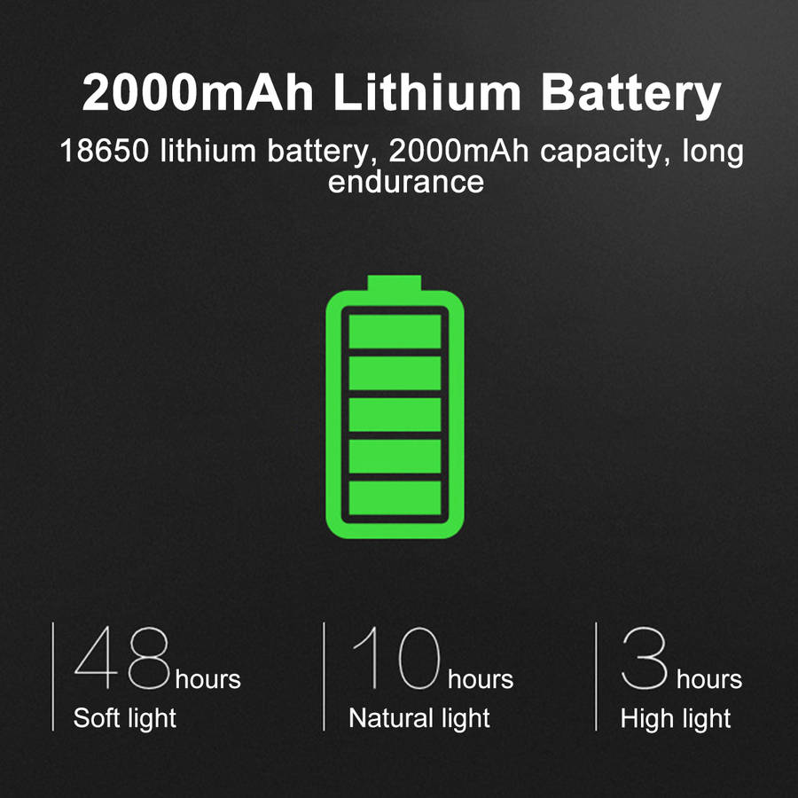 5. Step-less Dimming: Touching switch with power storage function, detachable. It can be used while charging. There are three kinds of light color - white light, warm light, and nature light. Long-press the switch can adjust the brightness freely.