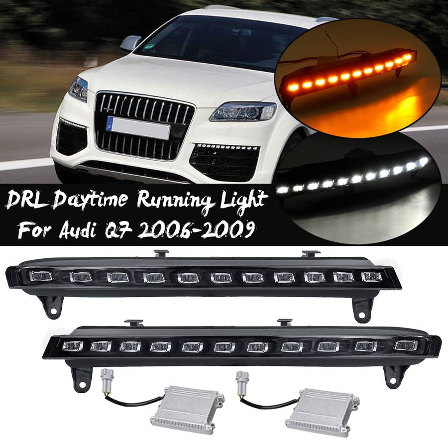 Pair LED White+Amber DRL Daytime Running Light Turn Signal Lamp For Audi Q7 2006-2009