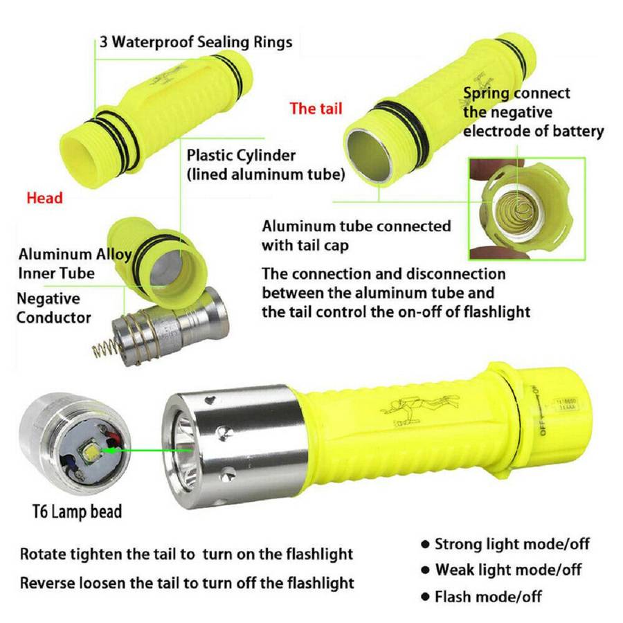This LED Waterproof Flashlight is a compact pocket-size flashlight with a very high output. It uses LED and has a lifespan of over 30,000 hours of light. The light comes with two brightness levels plus a light, making it the perfect flashlight for outdoor use. The flashlight is also waterproof, making it ideal for versatile use such as diving, camping trips, hiking and more.