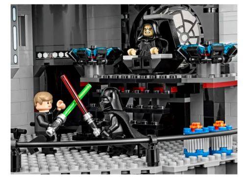 Reenact amazing scenes from the Star Wars saga with the Empires ultimate planet-zapping weaponthe Death Star! With over 4,000 pieces, this fantastic model has a galaxy of intricate and authentic environments, including a superlaser control room, Imperial conference chamber, hangar bay with moving launch rack and Lord Vaders TIE Advanced with space for Vader inside, Emperor Palpatines throne room, Droid maintenance room, detention block, trash compactor, tractor beam, cargo area, turbo laser with spring-loaded shooters and seats for the 2 Death Star Gunners, and 2 movable turbo laser towers. This fantastic set also includes 23 iconic minifigures and 2 Droids to ensure hours of Star Wars battle fun.