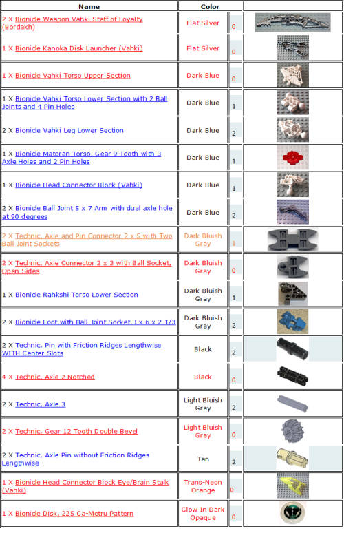 LEGO SET 8615 - BORDAKH BIONICLE PIECES