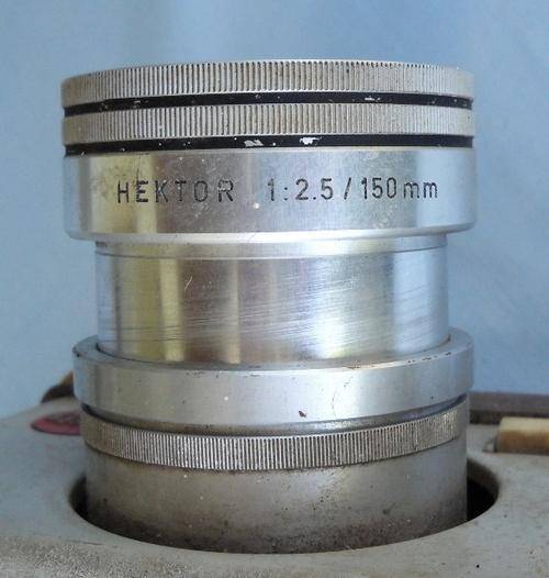 It has a Leitz Wetzlar Hektor 1:2.5 / 150 lens.