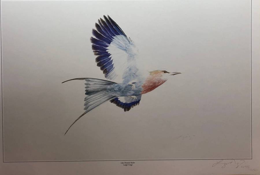 Leigh Voigt (SA 1943 - ) Limited signed and numbered edition 493 / 1250 - titled "Lilac breasted roller"