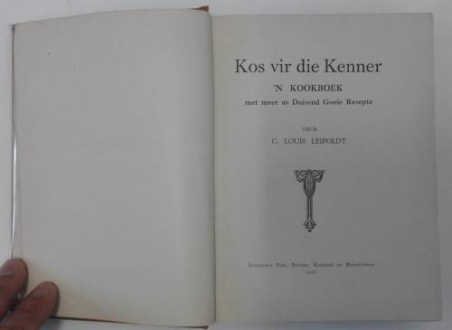 Leipoldt, C. Louis; 'Kos Vir Die Kenner; 'n Kookboek met meer as Duisend Goeie Resepte'