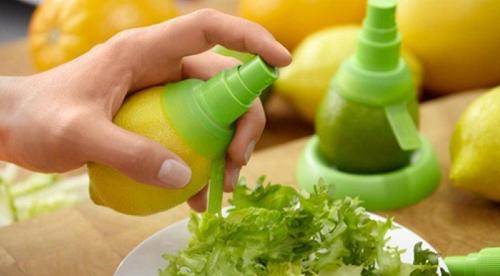 TWIST THE TOOL INTO A LEMON OR LIME FOR A SPRAY OF FRESH CITRUS