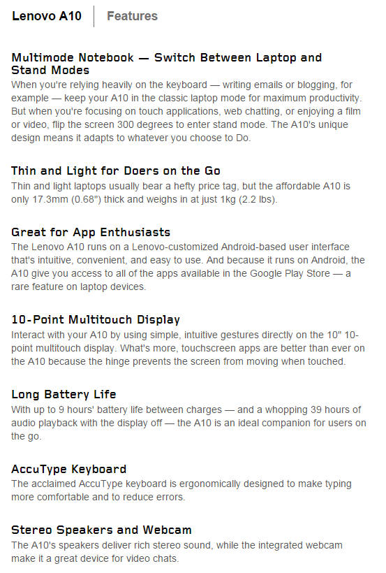 LENOVO A10 ANDROID NOTEBOOK. SUPER LIGHT AND CONVENIENT TO USE ON THE MOVE. LOCAL STOCK.