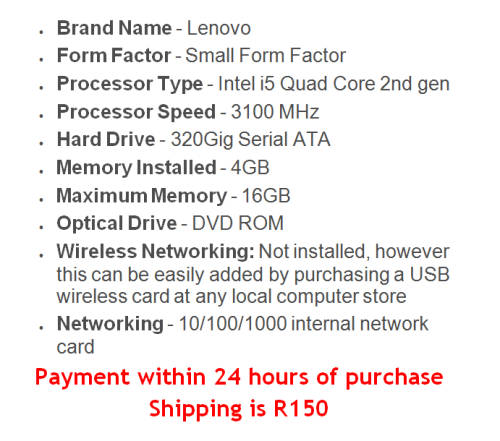 Lenovo i5 2nd gen 2.4GHz, 320GB HDD, 4GB Ram