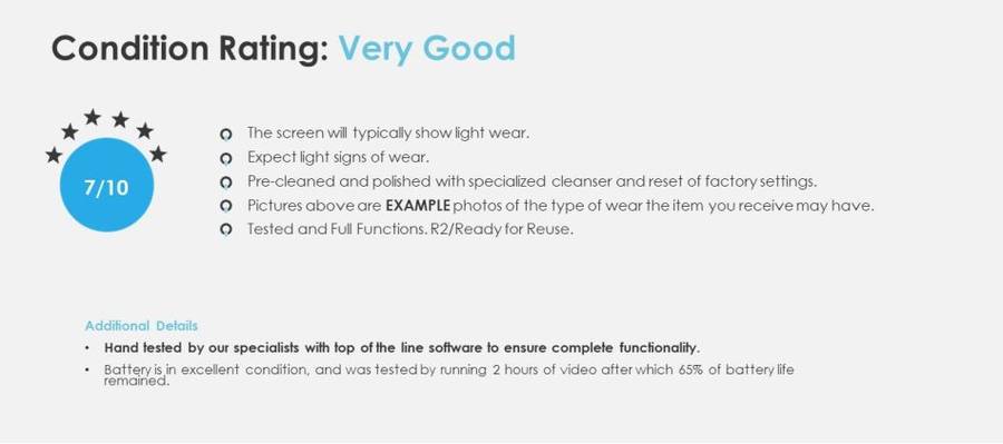 Our refurbished devices have not been repaired in any way. Our devices are generally in excellent condition, but may have some slight signs of wear. They are thus previously owned devices that are being sold after having been taken through a process of testing and upgrading. Our refurbished devices normally have their warranties extended or are sold with new warranties – and these are backed either by the seller.