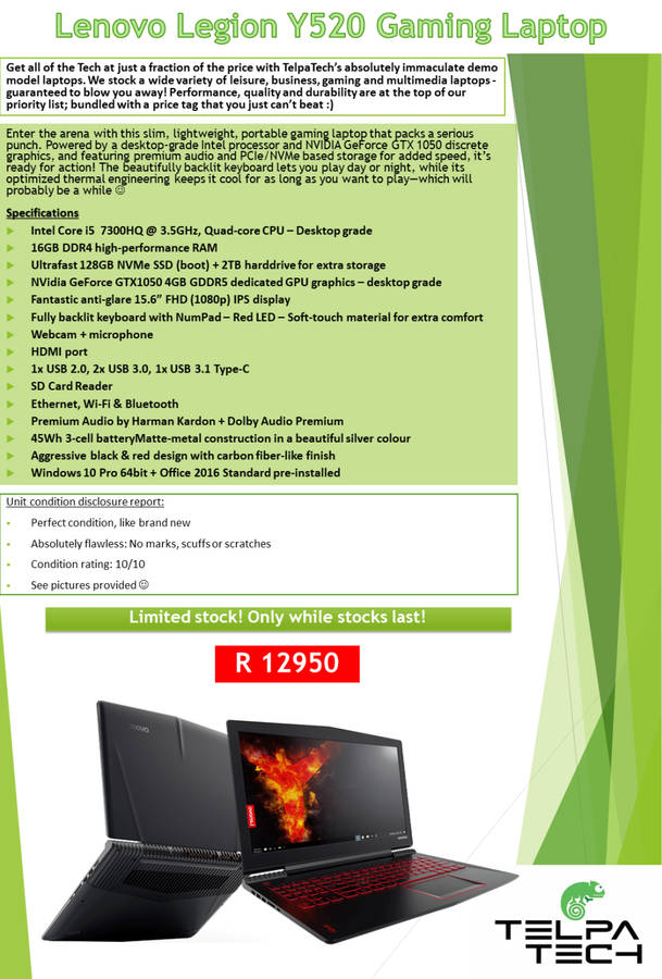 Lenovo Legion Y520 - BEAST GAMING **Desktop-grade Core i5 + GTX1050 4GB, 16GB RAM, NVMe SSD** Lenovo Legion Y520 - BEAST GAMING **Desktop-grade Core i5 + GTX1050 4GB, 16GB RAM, NVMe SSD** Lenovo Legion Y520 - BEAST GAMING **Desktop-grade Core i5 + GTX1050 4GB, 16GB RAM, NVMe SSD** Lenovo Legion Y520 - BEAST GAMING **Desktop-grade Core i5 + GTX1050 4GB, 16GB RAM, NVMe SSD** Lenovo Legion Y520 - BEAST GAMING **Desktop-grade Core i5 + GTX1050 4GB, 16GB RAM, NVMe SSD** Lenovo Legion Y520 - BEAST GAMING **Desktop-grade Core i5 + GTX1050 4GB, 16GB RAM, NVMe SSD**