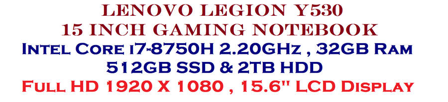 Lenovo Legion Y530,  Intel HEXA Core i7-8750H 2.20GHz, 32GB Ram, 512GB SSD & 2TB HDD, 6GB NVIDIA Lenovo Legion Y530,  Intel HEXA Core i7-8750H 2.20GHz, 32GB Ram, 512GB SSD & 2TB HDD, 6GB NVIDIA Lenovo Legion Y530,  Intel HEXA Core i7-8750H 2.20GHz, 32GB Ram, 512GB SSD & 2TB HDD, 6GB NVIDIA Lenovo Legion Y530,  Intel HEXA Core i7-8750H 2.20GHz, 32GB Ram, 512GB SSD & 2TB HDD, 6GB NVIDIA
